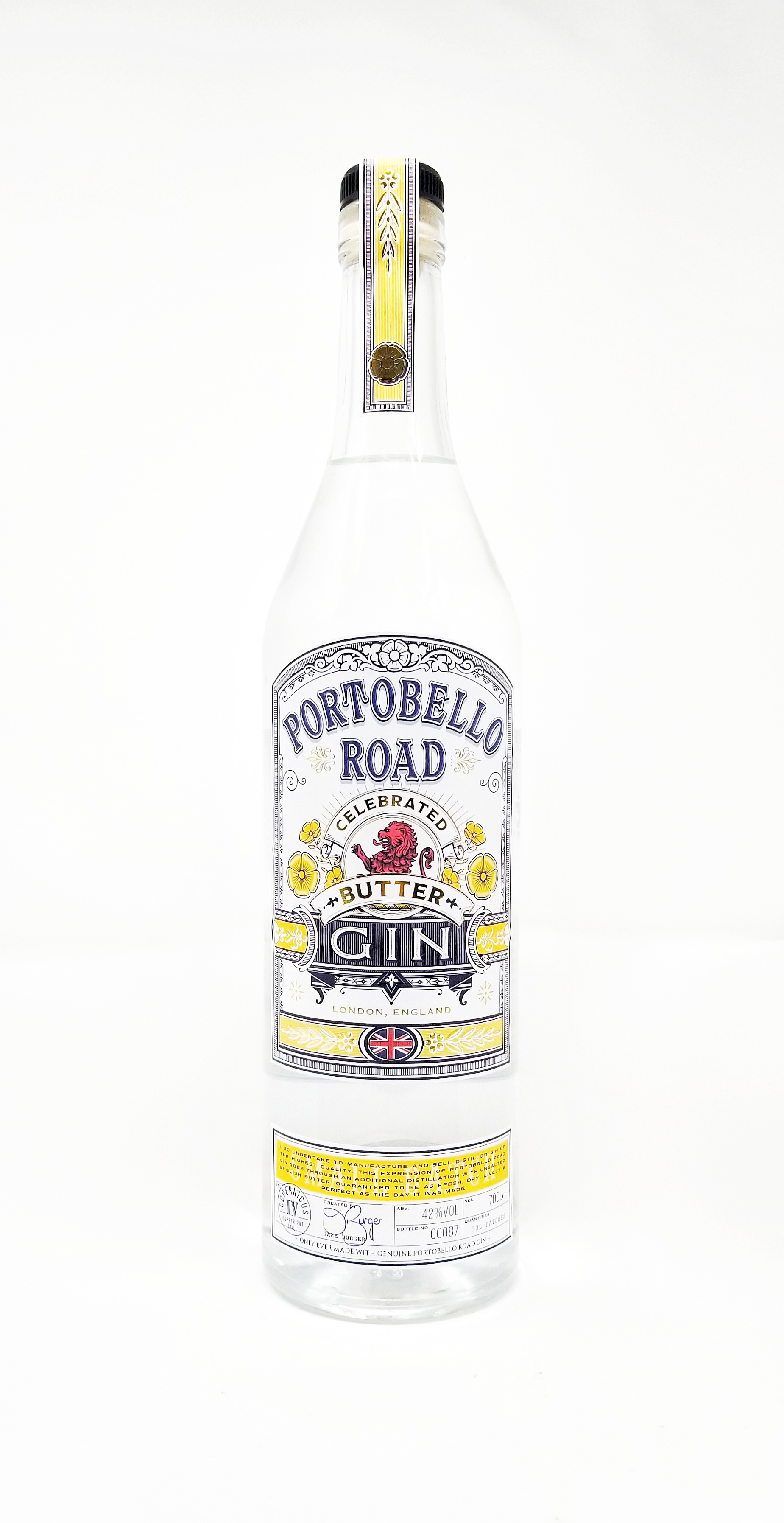 This expression of Portobello Road Gin is instantly familiar but noticeably different, straight away both visually and in the mouth it is noticeably more viscous than the classic Portobello London Dry, clinging to the glass and coating the tongue, and there is shininess, it gleams in the sunlight like quicksilver. To create Celebrated Butter Gin, we use our London Dry recipe, which is then put back in to our copper stills with blocks of unsalted butter, giving the gin a smooth, creamy mouth feel.